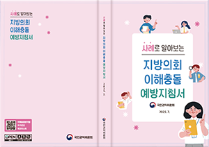 국민권익위원회는 「공직자의 이해충돌 방지법」 과 관련된 실제 사례와 주요 질의 사항을 담은 『사례로 알아보는 지방의회 이해충돌 예방지침서』를 발간 · 배포함. 해당 지침서는 국민권익위원회 누리집에도 게시되어 있어 국민 누구나 편리하게 열람할 수 있음.